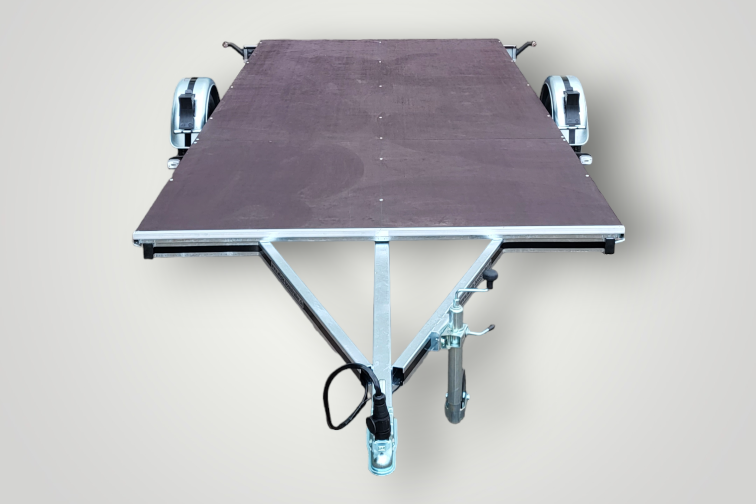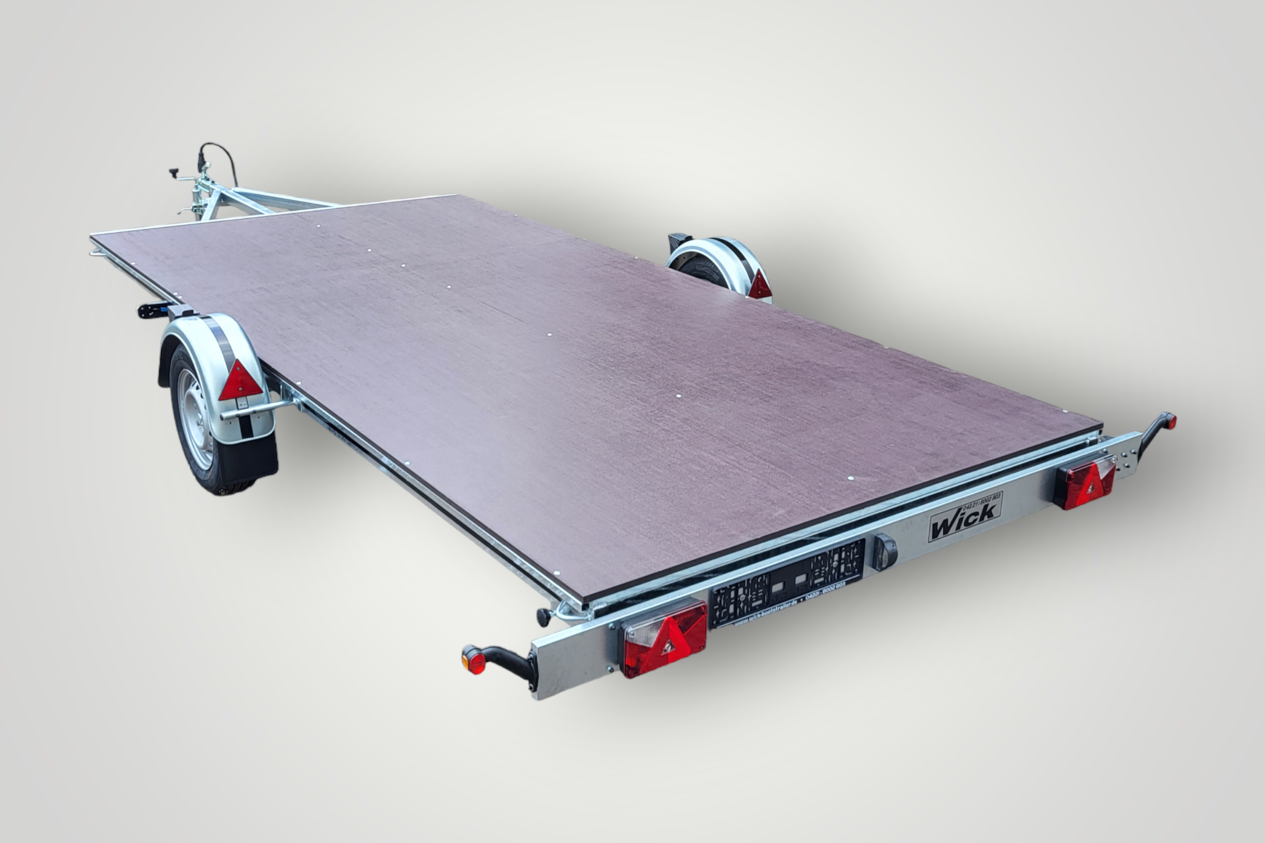Unser vielseitiger Plattformanhänger ist ein Multifunktionstalent! Auf der wasserfesten und rutschhemmenden Plattform aus Siebdruckholz transportieren Sie vom Quad über Motorräder bis hin zu schweren Arbeitsgeräten alles, was sich sicher verzurren lässt – selbst Hovercrafts.
